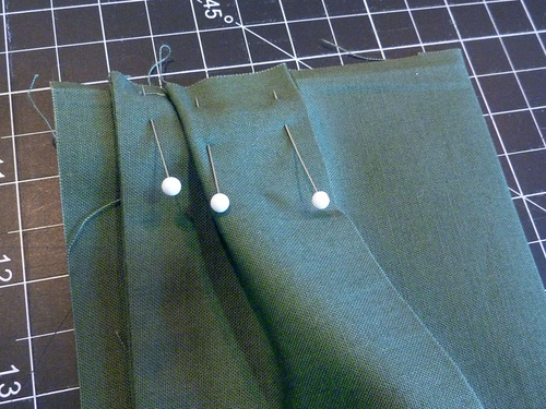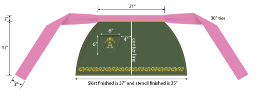 - Find one of the two skirt panels. Find the center bottom of the skirt (the 38″ side) and mark this point with a pin.