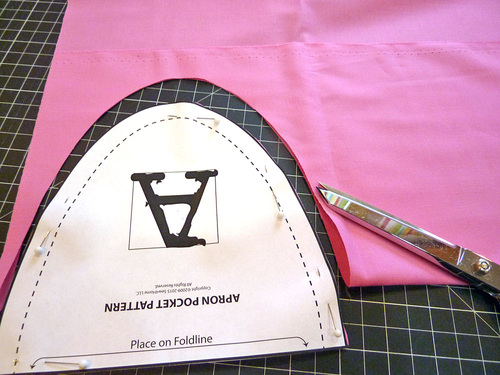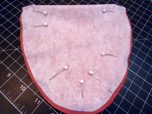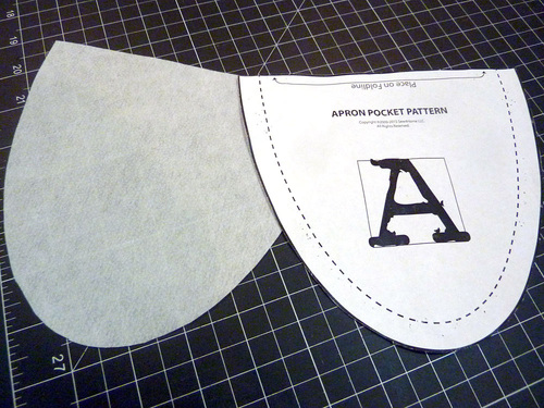 Using the pattern, cut ONE pocket piece not on the fold – just cut along the fold – you are only interfacing half of the pocket