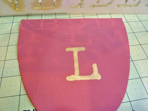 - Lay the stencil onto the pocket, lining up the center top of the letter with the center pin point on the pocket.