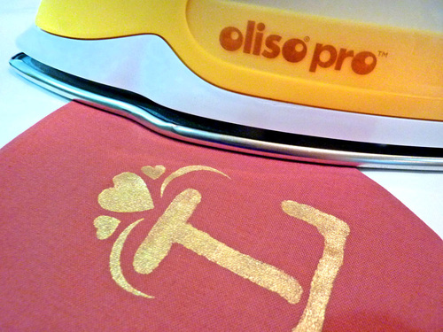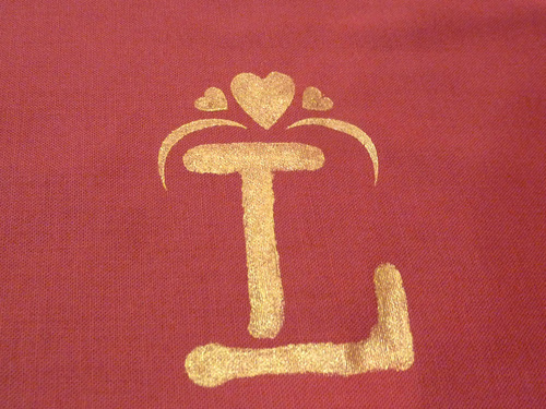 - When our pocket letter had dried, we added a little heart motif above the letter. This is totally optional; the small heart flourish happened to be one of the secondary designs available on our chosen stencil.