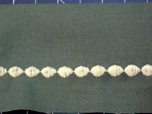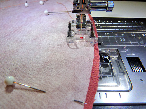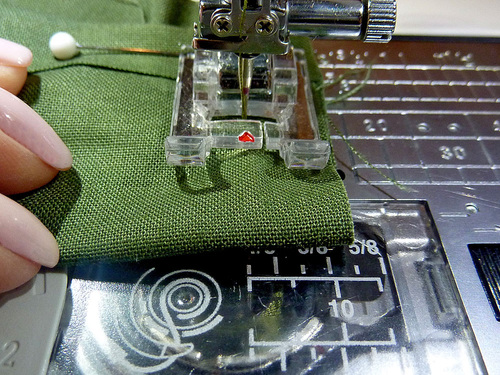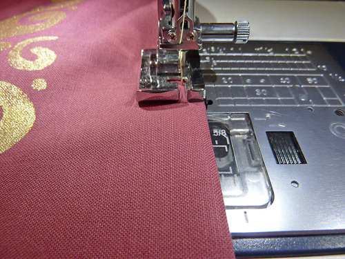- Re-thread the machine with thread to match the fabric in the top and bobbin. Revert to a standard stitch length.