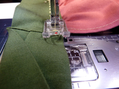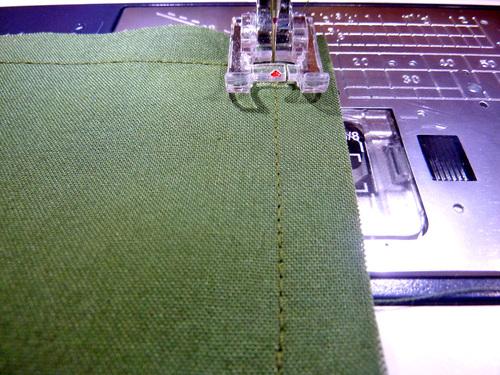 - Edgestitch along both sides and across the bottom, pivoting at the corners.