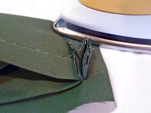 - Press well, pressing in the raw edges of the opening so they are flush with sewn seam.