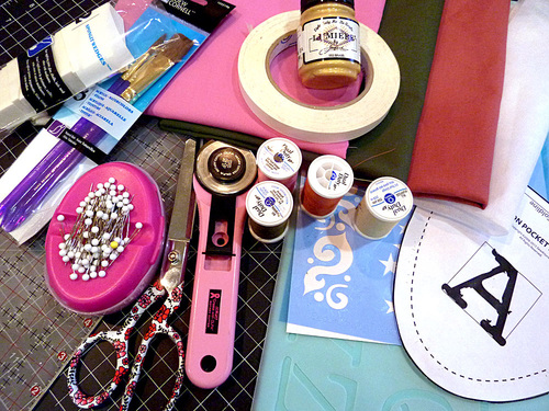 - All purpose thread to coordinate with stencil color; we used gold metallic