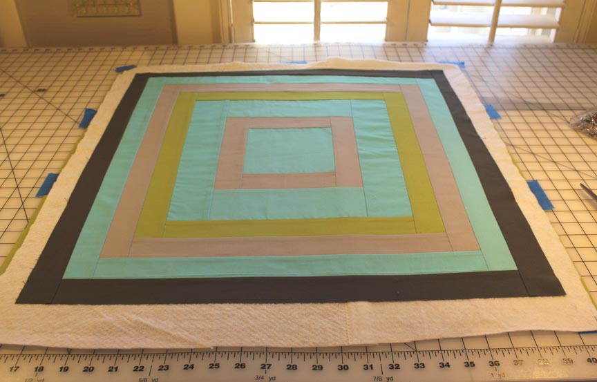 We’ll start by making a quilt sandwich, which consists of three layers: the quilt back, the batting, and the quilt top.