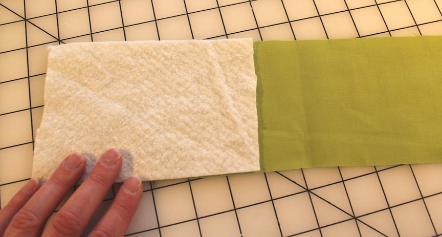 Simply place a piece of batting between two pieces of fabric (the same fabrics and batting that you are working with) to make a mini quilt sandwich. If you’re using cotton batting, you don’t really need to pin baste this together because the fabric will stick to the batting.