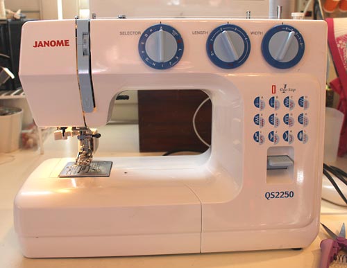 Below is a picture of one of the machines I use to do my sewing and quilting. It’s an older Janome; it’s not computerized, and it’s not fancy at all, but I love it. It’s a real workhorse and makes beautiful stitches.