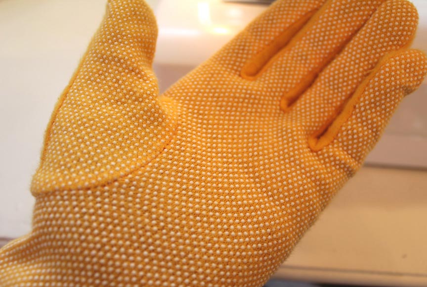 I always quilt using gloves, which are readily available at your local fabric store or online. They are cotton gloves with small rubber dots all along the palm side. The rubber dots help grasp the fabric, making it easier to move all of the layers through the machine. If you’re in a pinch, rubber kitchen gloves or clean gardening gloves can also be used.