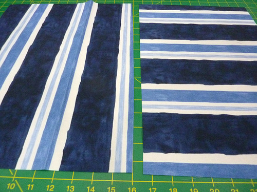 - Find the two front fabric panels: the left panel at 13¼” x 17” cut on the vertical and the right panel at 11” x 17” cut on the horizontal.