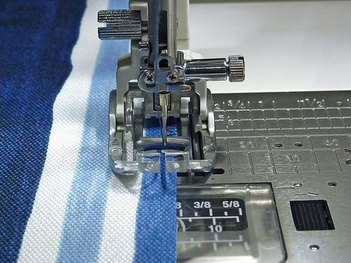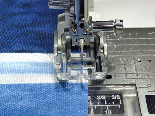 - Thread the machine with thread to best match the fabric in the top and bobbin and set for your favorite edge finishing stitch.