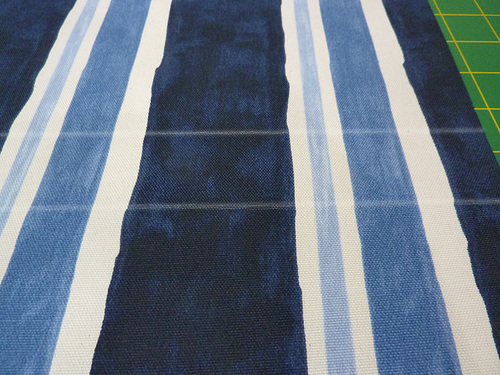 We used an outdoor fabric in a bold stripe to match our nautical theme, cutting the stripes both vertically and horizontally for extra interest. Stripes are a perennial favorite from several outdoor fabric manufacturers and can be found in a great range of colors to best match your outdoor living space.