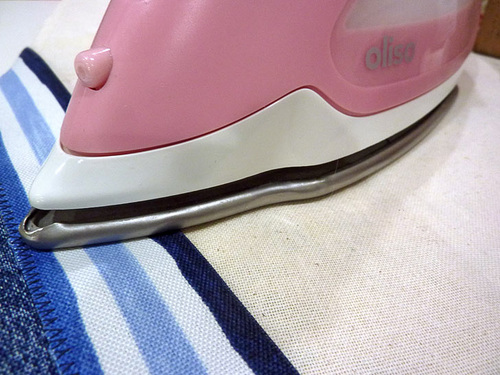 - Flip the pressed and pinned panel so the folded edge is to the right and the raw edges are to the left, revealing the remaining drawn line.