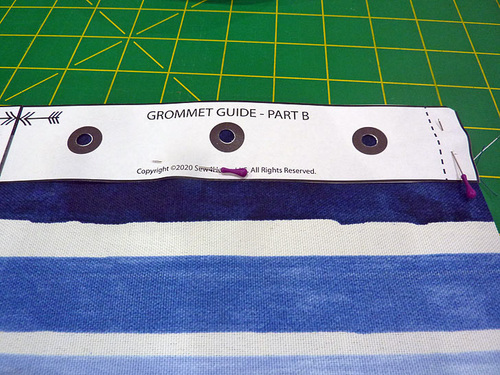 NOTE: If you are brand new to working with grommets/eyelets, check out our full tutorial on metal grommets prior to starting the project. - Repeat to set all 14 grommets, seven on each panel.