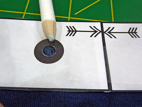- Find the assembled Grommet Guide. Punch out or cut out the center of each grommet positioning circle.