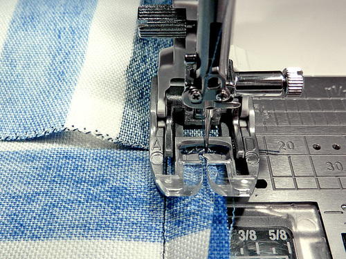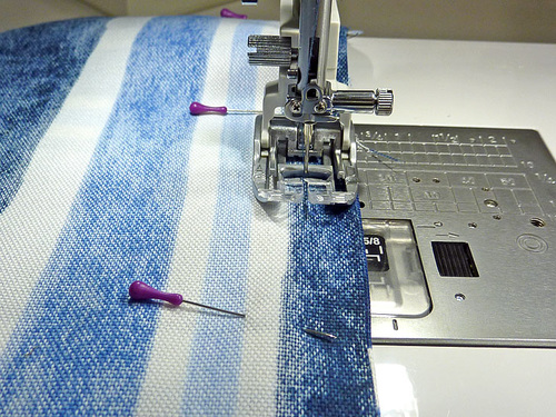 - Because our fabric was prone to raveling, we also finished the seam allowance all around with a standard zig zag. This is optional, but recommended.