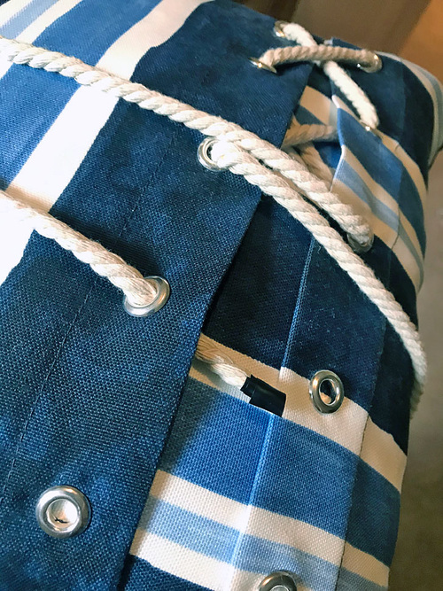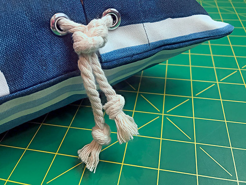Soft cording was our choice for the lacing. Its texture fit the nautical theme and we knew it would be easy to untie and unlace should the pillow cover need to be laundered.