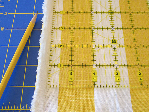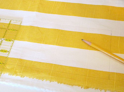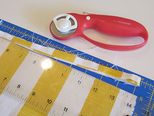 NOTE: For extra accuracy with the striped fabric, rather than using a rotary cutter, we drew in our cut lines, then used scissors to cut along the drawn lines.