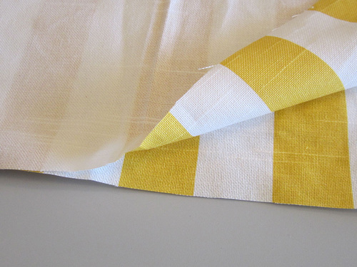 NOTE: Our stripes were approximately 1½” wide. We suggest a width of 1″ – 2½”. - 1 yard of 54″+ wide light to mid-weight linen or similar fabric in a coordinating color; we originally used 52″ Brussels Washer Linen Blend in Ivory by Robert Kaufman