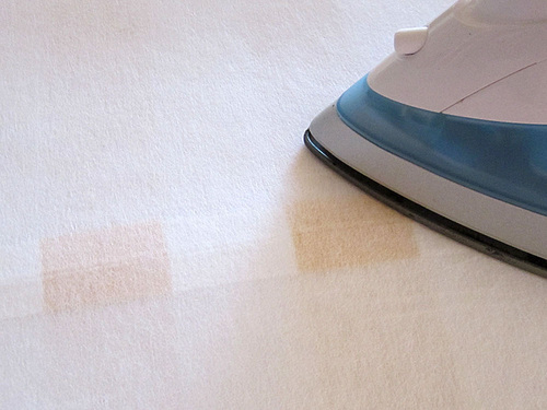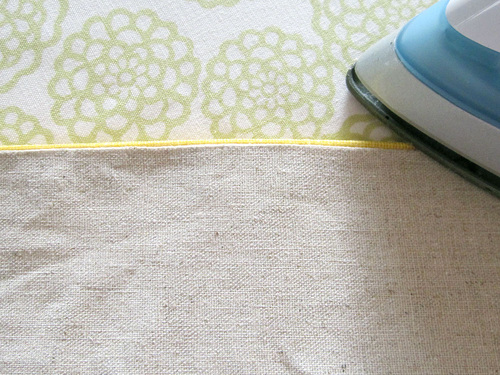 - Place the seamed top panel wrong side up on a flat but “iron-able” surface. You could even place towels onto the floor for this step.