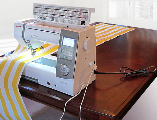 - You will be working with a very long panel. Set up your machine on a large work surface so the fabric can feed easily through the machine and out the back. You don’t want the fabric to “bump” into any obstacles. That could cause the stitching to become uneven. We used a dining room table.