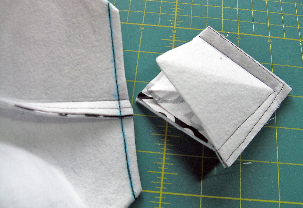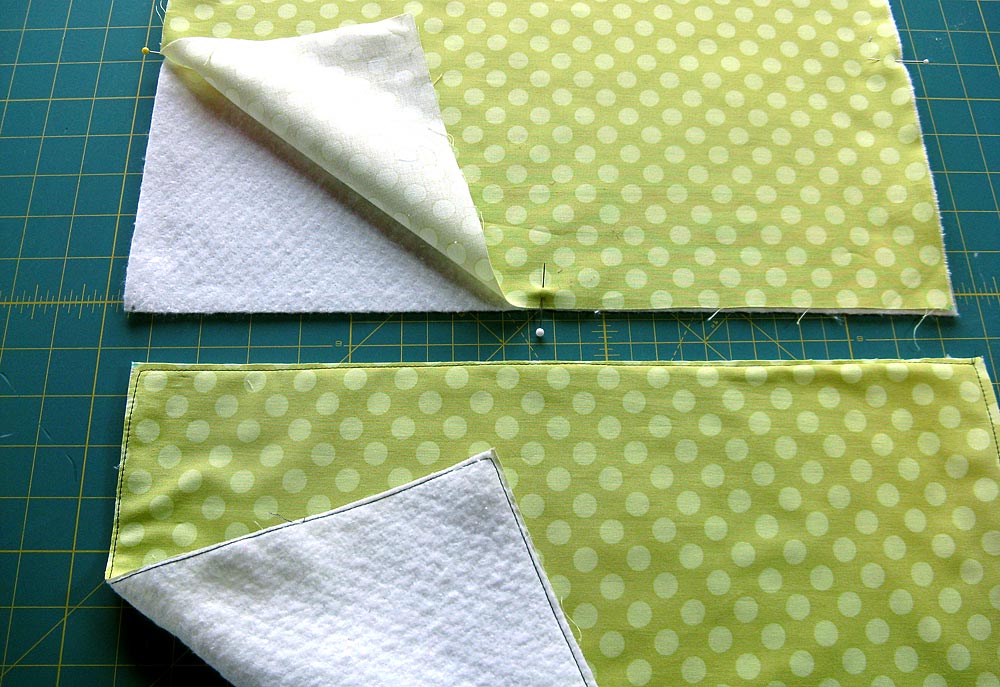 NOTE: As above, if you’ve chosen fusible fleece, follow the manufacturer’s directions to adhere the fleece to the fabric rather than stitching.