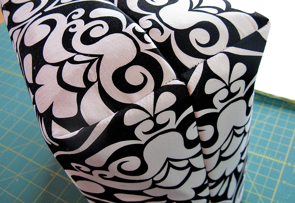 NOTE: We re-threaded with black thread in the top and bobbin because we liked the look of accent lines of topstitching inside and out. If you’d prefer a more subtle look, stay with a thread color to best match the exterior as your top thread and a color to best match your lining in the bobbin.