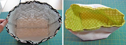 - Turn the basket right side out and gently push out to form the boxed corners.