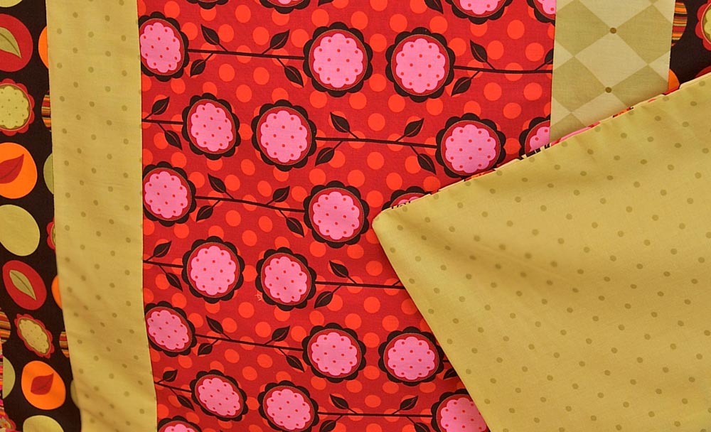 If you want to ease into trying your hand at quilting, this project is for you. It introduces the technique of joining together small strips to create a single large piece. We originally designed this tutorial as a little crib quilt, but decided we liked it better as a dresser cloth for our changing table. So, we omitted the batting and quilting through all the layers. So, the purists out there are hurling quilt pins at me, because without out those things it’s not really quilting. I know, I know … it’ll be our little secret.