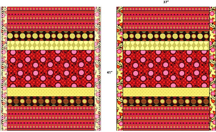 - Fabric for band 1 and band 7: ¾ yard of 45″ wide fabric: we used Patty Young’s Andalucia in Fire Flowery Stripe