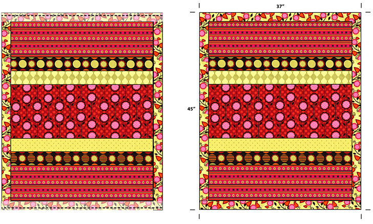 - Fabric for quilt borders: ½ yard of 45″ wide fabric: we used Patty Young “Andalucia” in Kiwi Flora