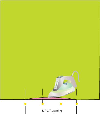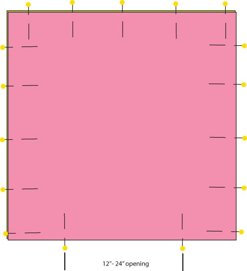 - Pin the 36″ x 36″ squares, right sides together, leaving a 12″ – 24″ opening along one edge.