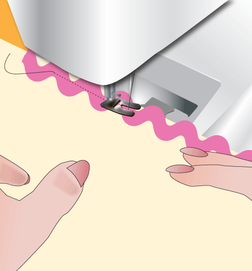 - Select a decorative stitch on your machine, and thread the machine with contrasting thread.