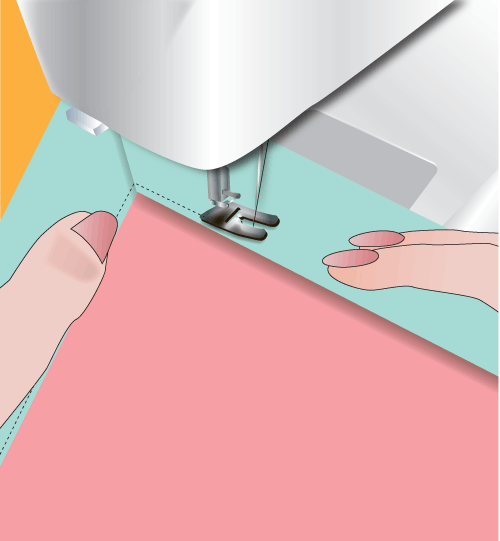 - Sew to the corner and stop. Back-tack to lock your seam.