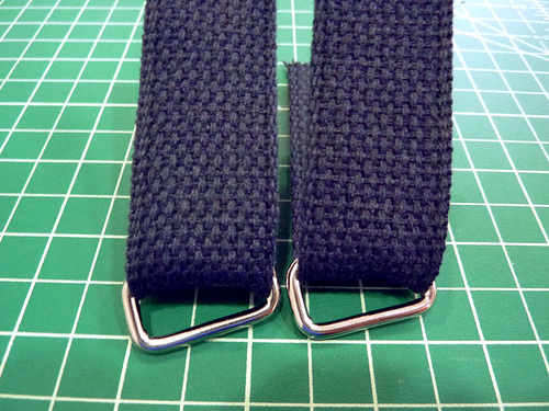 - With each strap threaded through its ring/slider, it’s time to baste each raw end in place.