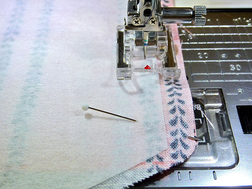 - Place the panels right sides together. Pin along both sides and across the bottom.