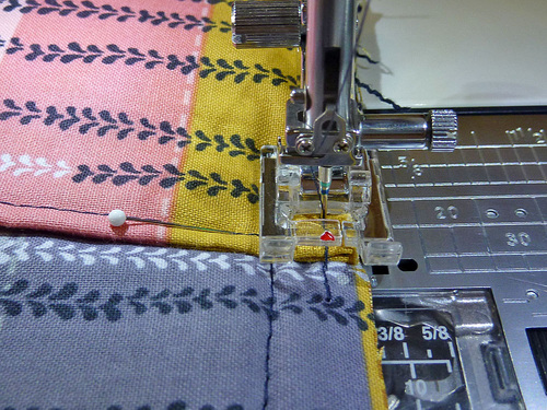 - Using a ½” seam allowance, stitch both sides.