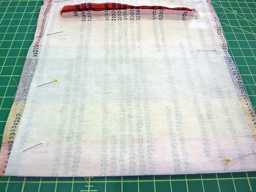- When done, unfold the panel again and place the 7″ sides right sides together. Pin in place.