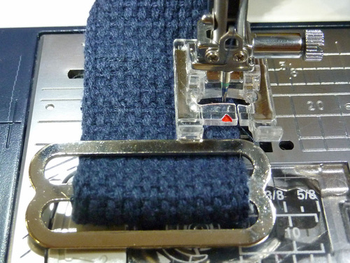 - Edgestitch the folded end to secure the slider in place. We used a narrow X-Box, running the stitching as close to the slider as possible.