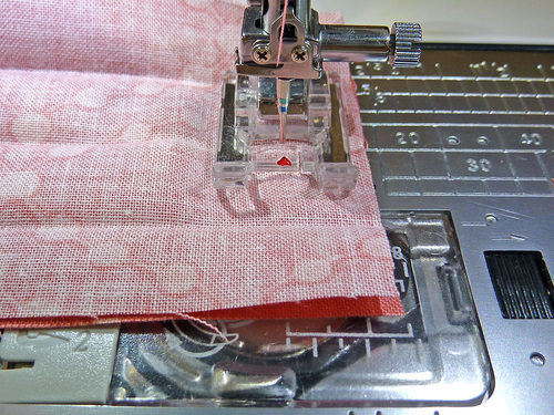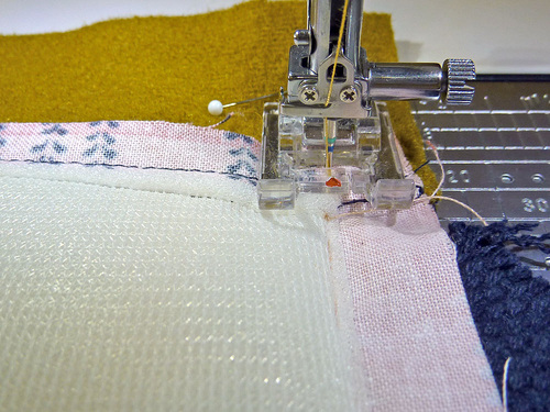 - Machine baste the flap in place, staying within a standard ½” seam allowance.
