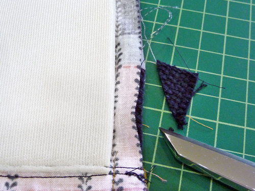 - Using a ½” seam allowance, stitch all the way around the base. Go slowly, holding the layers flat with your fingers if necessary to avoid any puckers, especially around the corners.