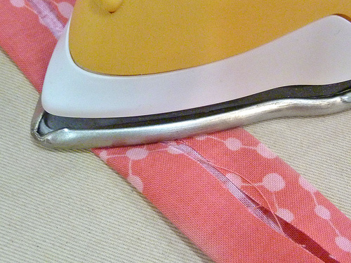 - Press open the seam allowance, then re-fold the panel wrong sides together. Press the loop all around.