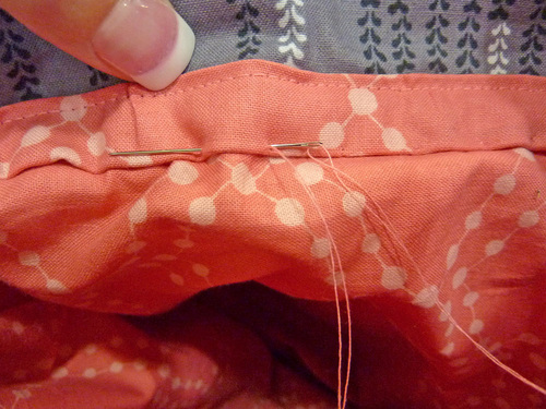 - Whipstitch the folded edge to the lining, keeping your stitches small and neat.