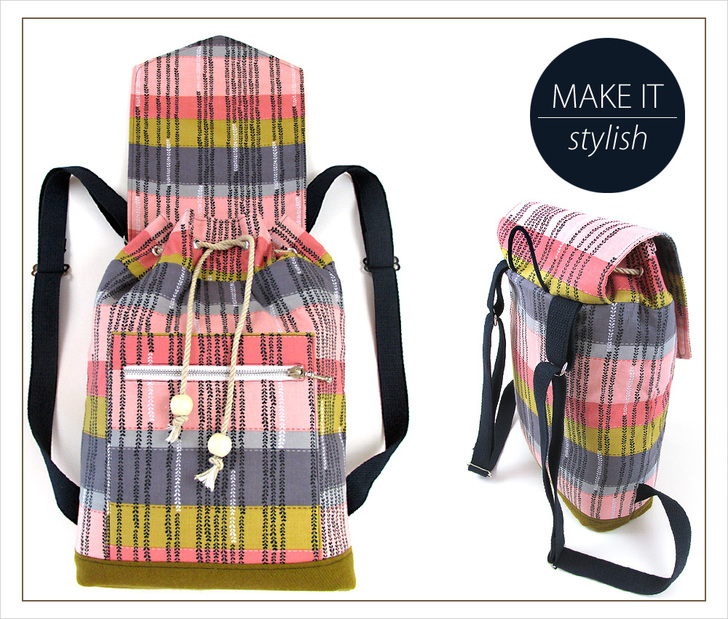 When working on our projects, we’re always keeping an eye out in stores, magazines, and online for design elements that are the most stylish, unique, and have the best functionality. We want to make sure we’re bringing you the kind of high-end features that take handmade to the next level – so your finished item looks as cool as what you’d find to buy. More cool in fact, because you’ve chosen the fabric, colors, and notions to best fit your personal style. This backpack borrows elements we’ve seen on boutique bags as well as the street trends spotted on our own local school and college campuses.