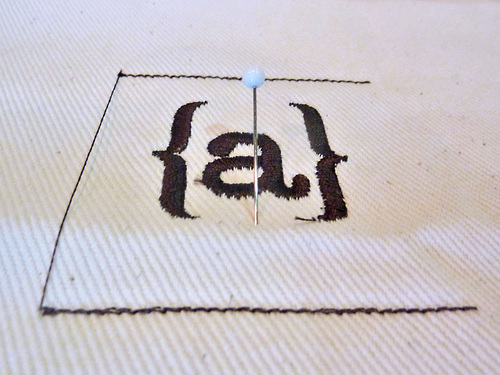 - Hoop the twill fabric and stabilizer, and monogram the letter of your choice surrounded by the brackets.