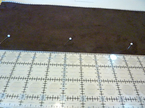 - Measure 3½” up from the bottom raw edge of the panel and draw a horizontal line with your fabric pen/pencil.