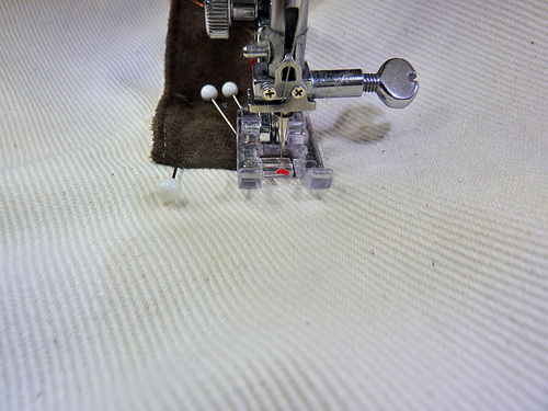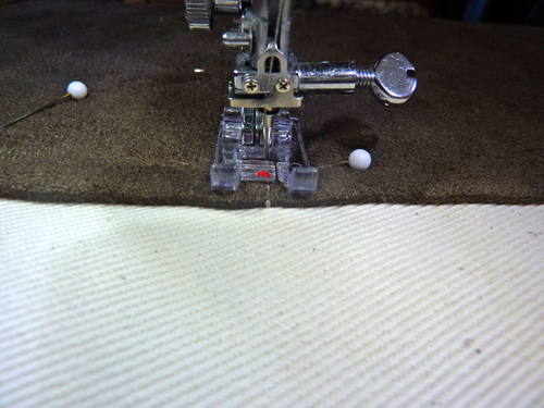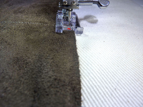 - If necessary, re-thread your machine with thread to match the faux suede in the top and bobbin. The stitch should still be slightly lengthened.