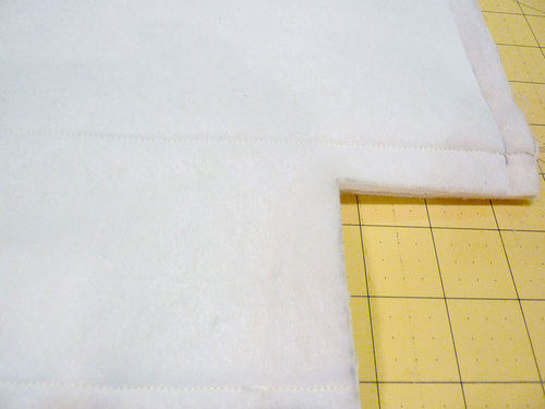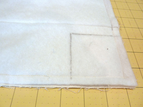 - Double stitch across the corner, using a ½” seam allowance.