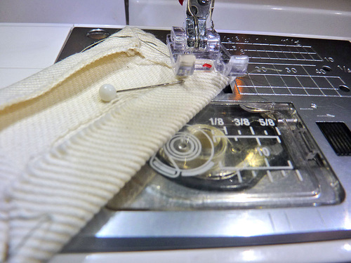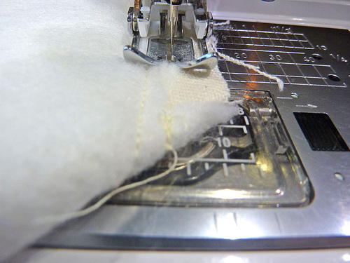 - Re-thread the machine if necessary if thread to best match the bag exterior in the top and bobbin. Re-set the stitch length to normal.