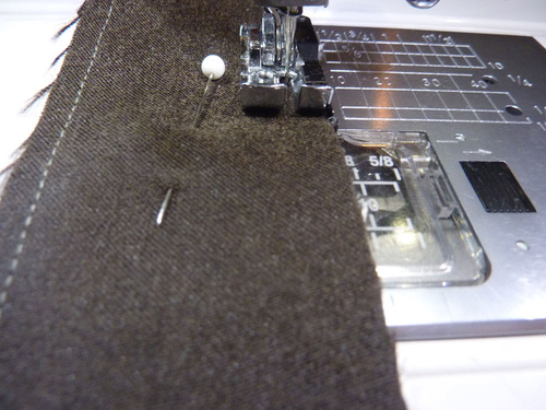 - Topstitch through all the layers along the drawn/marked vertical line, creating two sections for the pocket panel.