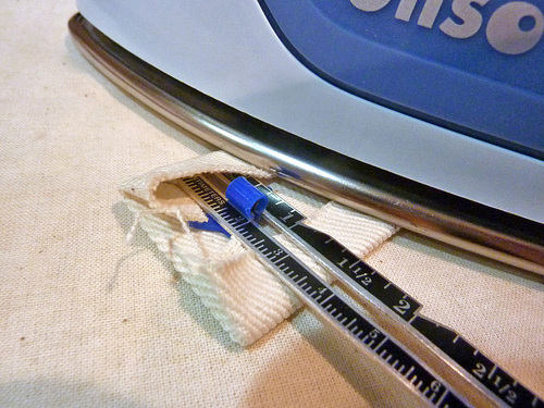 - Gently roll the tube down, revealing about ⅛” of the cotton along the top seam line. Very carefully press this cotton reveal in place.